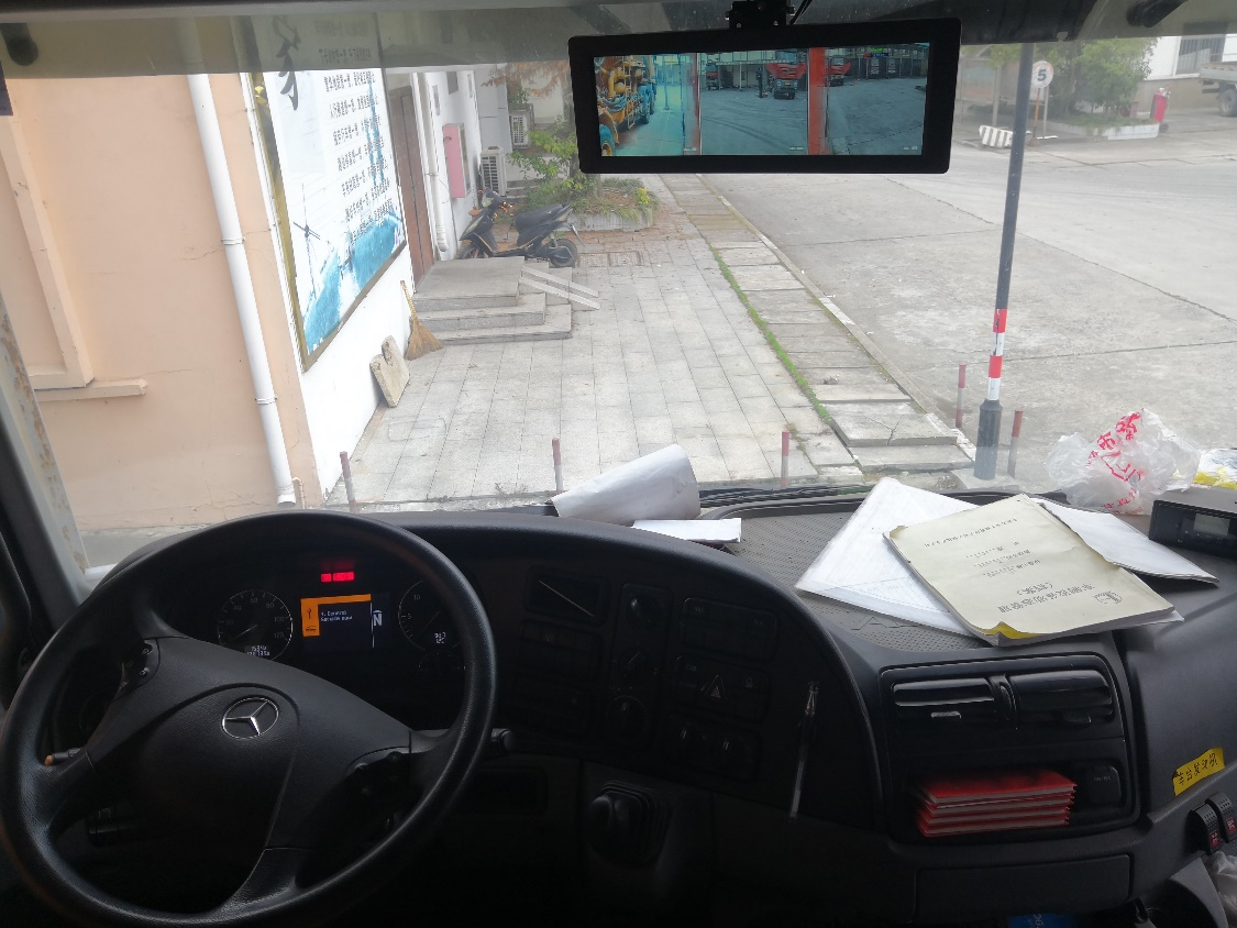 1. 奔驰 Actros 卡车的电子后视镜画面与玻璃反光镜的成像一致,而国内的样件与玻璃反光镜对比却不尽如人意。