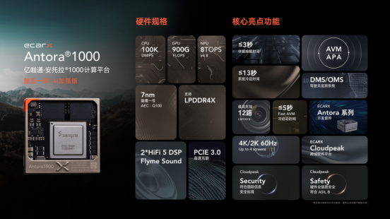 在智能座舱领域,亿咖通科技参与投资的芯擎科技开创性地打造了中国首款7nm车规级SoC“龍鹰一号”,至今出货量已超50万片,以此为底座打造的亿咖通·安托拉®系列计算平台,以其出色的性能和高可靠性安全性设计在众多车型量产案例中持续获得口碑验证,在行业中逐步确立了领先地位。