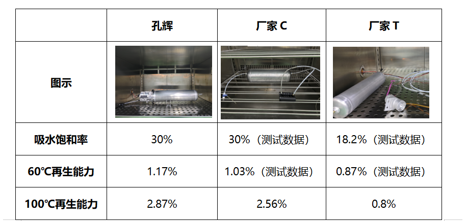 孔辉闭式阀泵干燥器吸水及再生能力测试结果