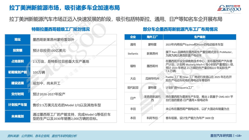 拉丁美洲乘用车市场以燃油车为主,新能源汽车呈现快速增长的态势。在相关政策的引导下,日系、德系、美系等车企已在拉丁美洲布局数十年,拥有完善的生产工厂和零部件供应体系。近年来随着新能源汽车的蓬勃发展,包括特斯拉、Stellantis、通用等车企积极拓展拉美市场,发布新能源汽车工厂规划。