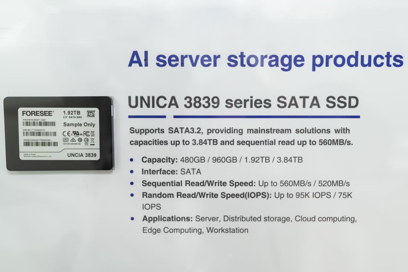 在人工智能技术的推动下,科技企业在云服务、智能驾驶、流媒体等领域迎来了新的市场增长点,同时这一趋势也极大地激发了AI终端对高容量SSD和DRAM的迫切需求。为此,江波龙在今年推出了一系列创新存储产品,包括了专为AI服务器设计的eSSD、RDIMM、CXL 2.0内存拓展模块,以及为AI PC量身定制的新型内存形态LPCAMM2等,满足AI时代对存储性能的新需求,与全球合作伙伴共同开启端侧AI的更多可能性。