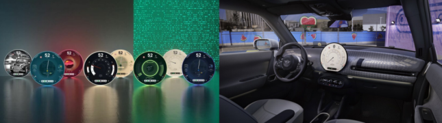 高设计感的圆形OLED显示屏:宝马旗下MINI汽车公布了未来安装在仪表板中间的圆形OLED屏幕。从图中可以看到,这款圆形的OLED屏幕传承了MINI“至简”的设计语言,与前数字科技相融合,独具魅力。