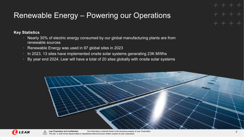 另外,为达成2030年目标,李尔公司实施能源效能管理手册,评估使用太阳能、风能等可再生能源的可行性,并推进储能方案。同时,在北美和欧洲等地签订购电协议,并采取能源属性证明等措施。